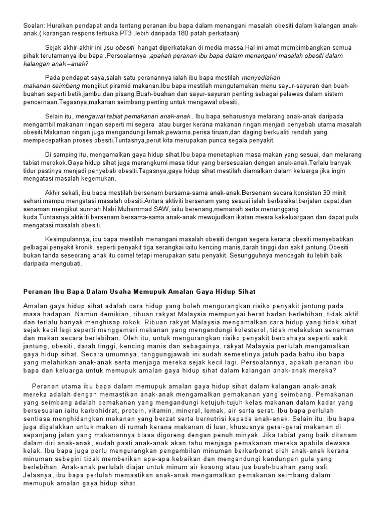 Peranan ibu bapa memupuk amalan gaya hidup sihat spm. Sebagai contohnya ibu bapa perlulah menggunakan bahasa Melayu yang betul apabila bertutur dengan anak-anak. Sejak 31 Ogos 1957 penduduk Malaysia yang terdiri daripada masyarakat berbilang kaum hidup bagai aur dengan tebingWalaupun menyedari hakikat bahawa rambut sama hitam hati lain-lain namun masyarakat yang berbilang kaum ini hidup dengan aman dan damaiOleh itu pelbagai pihak perlu memegang pada kekuatan jata negara yakni Bersekutu Bertambah Mutu untuk mengeratkan. Tanggungjawab Anak Terhadap Ibu Bapa.