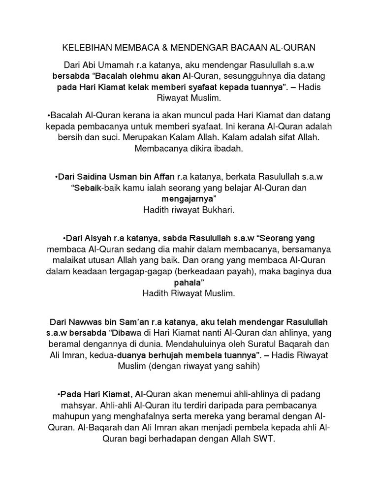 Kelebihan Membaca Mendengar Al Qurqn Pdf