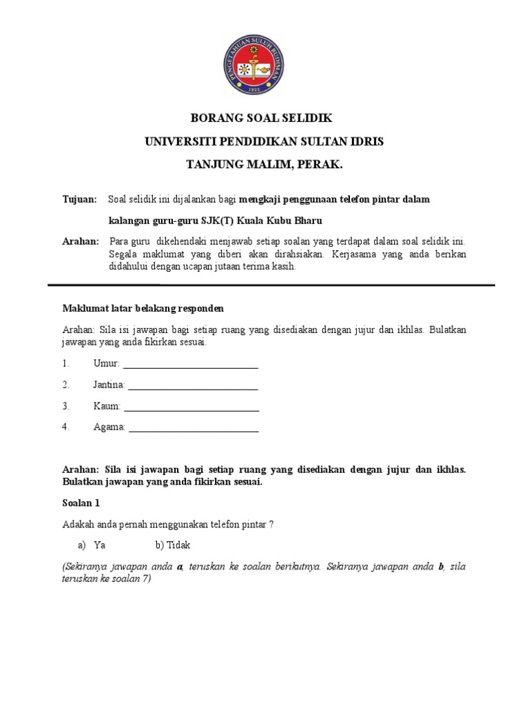 Soal Selidik Kumpulan Borang Soal Selidik Pdf