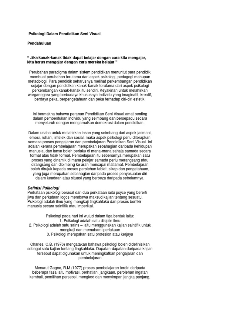 Psikologi Dalam Pendidikan Seni Visual Pdf