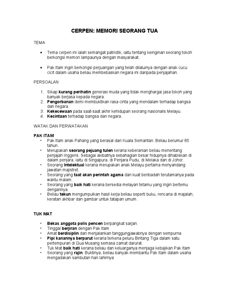 Cerpen Memori Seorang Tua Pdf