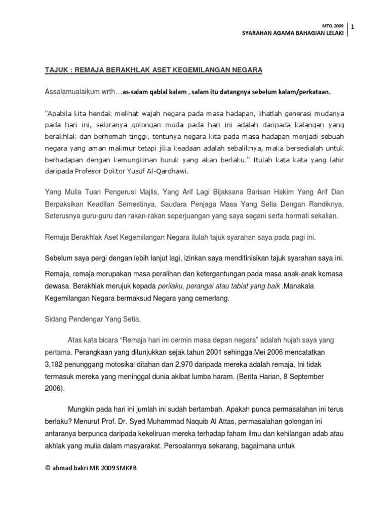 Tajuk Remaja Berakhlak Aset Kegemilangan Negara Perilaku Perangai Atau Tabiat Yang Baik Pdf